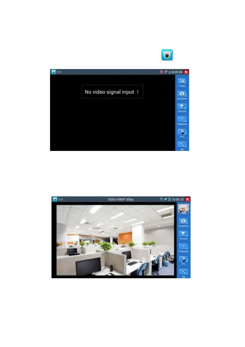 When HD CVI signal input, the tester will display the image resolution on the top bar.