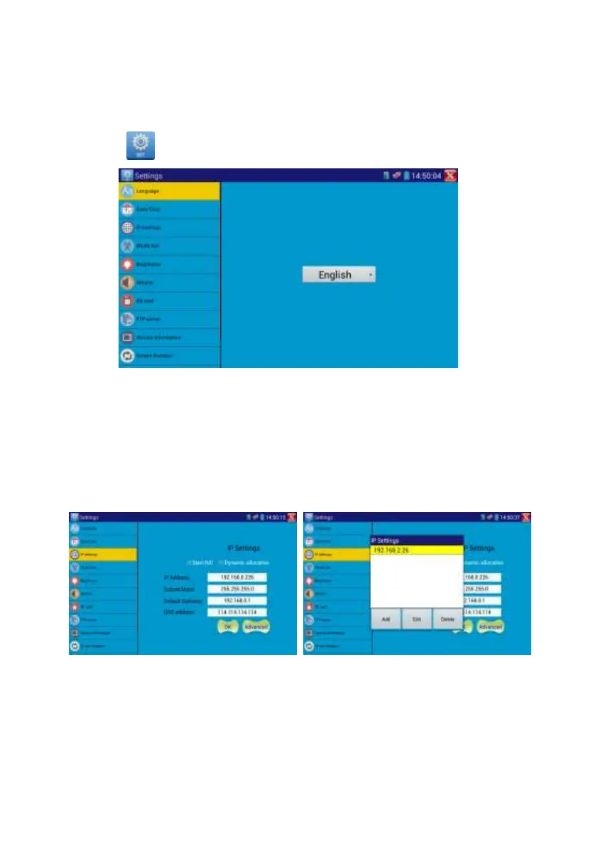 IP setting: Manually set the IP address, Subnet Mask, Default Gateway and DNS address or