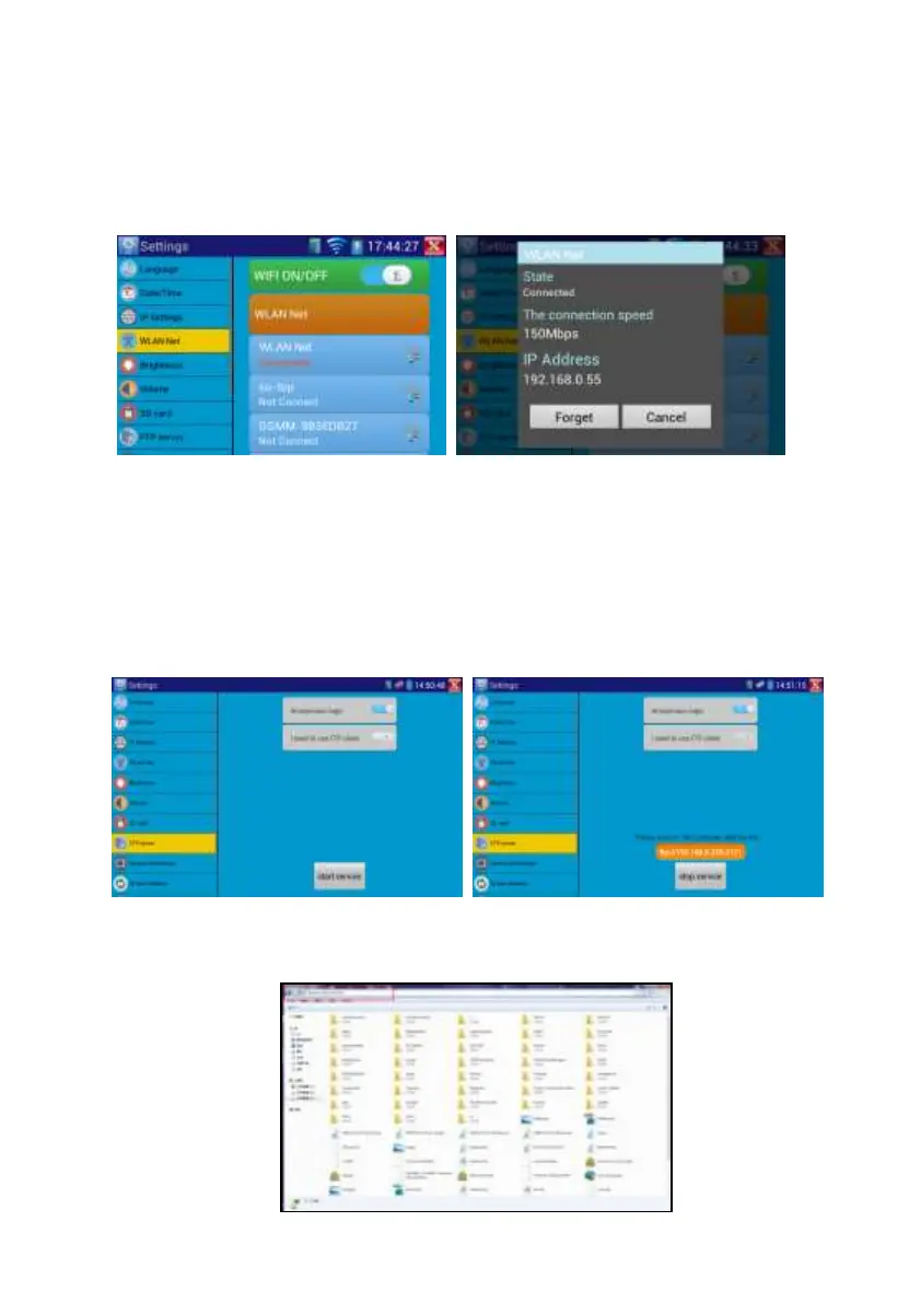 Start the FTP server and then input the tester’s FTP address in the PC’s address bar. This will