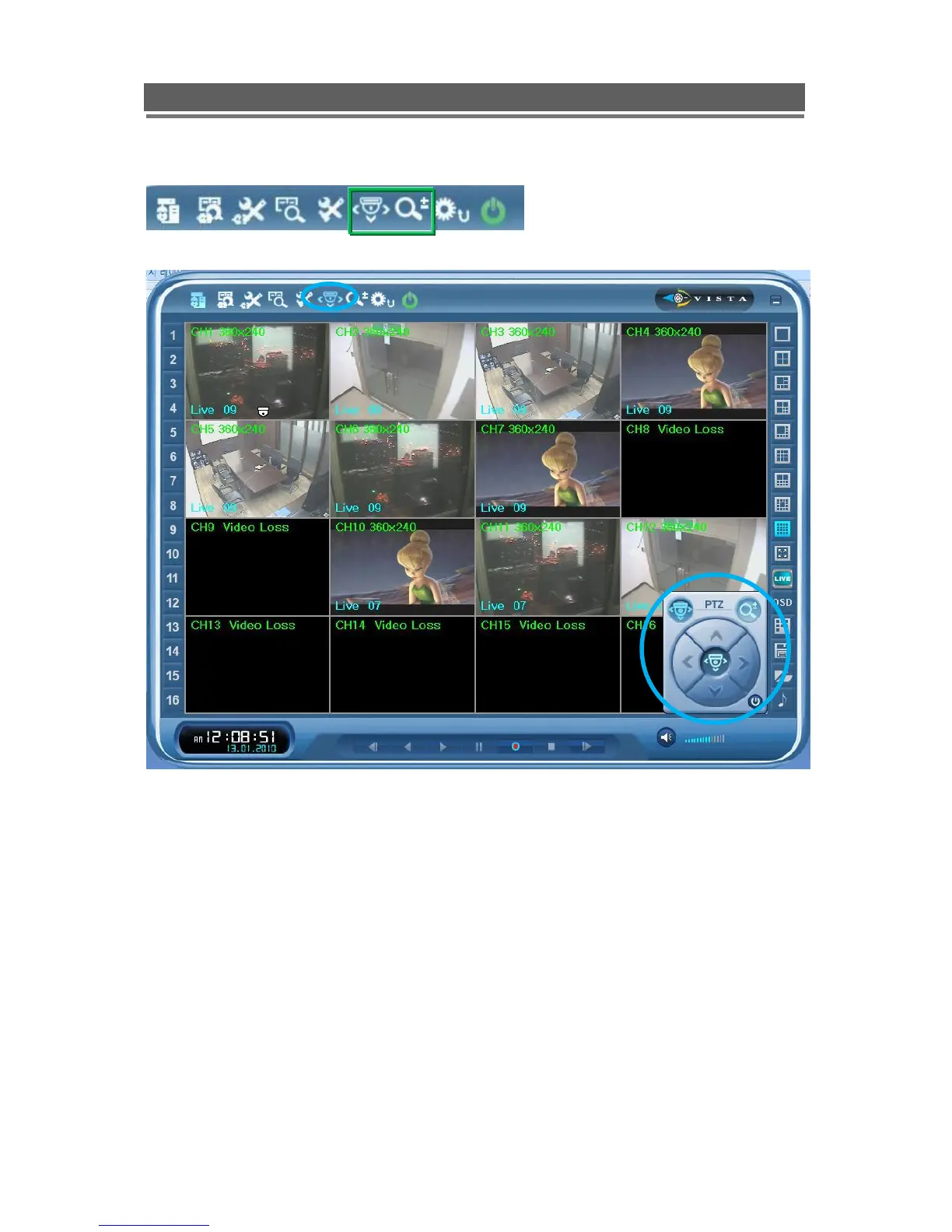 When PTZ button is being pressed, PTZ control icon will be pop-up on the live image.
