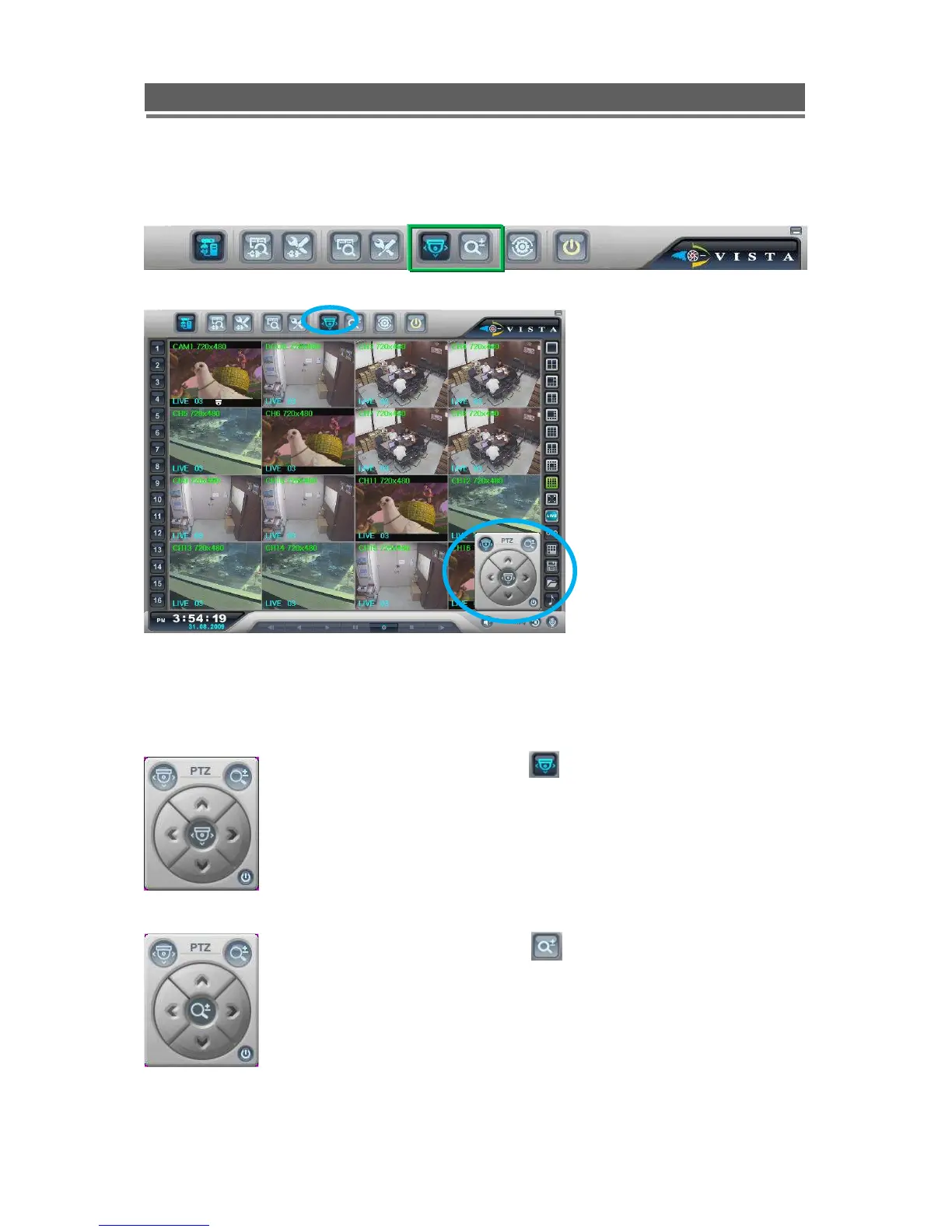 When PTZ button is being pressed, PTZ control icon will be pop-up on the live image.