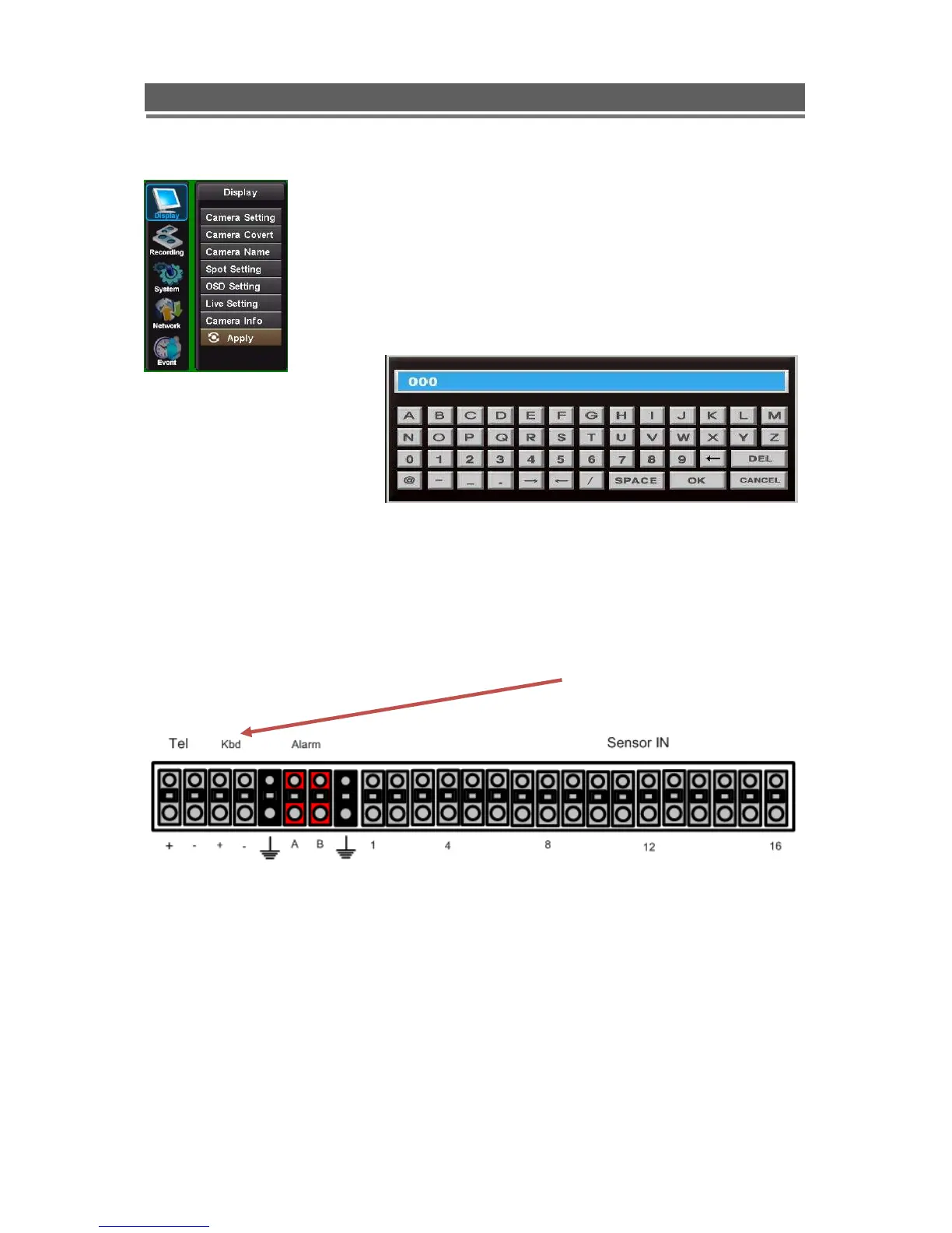 connectors are marked as Kbd (+) and Kbd(-), as shown below: