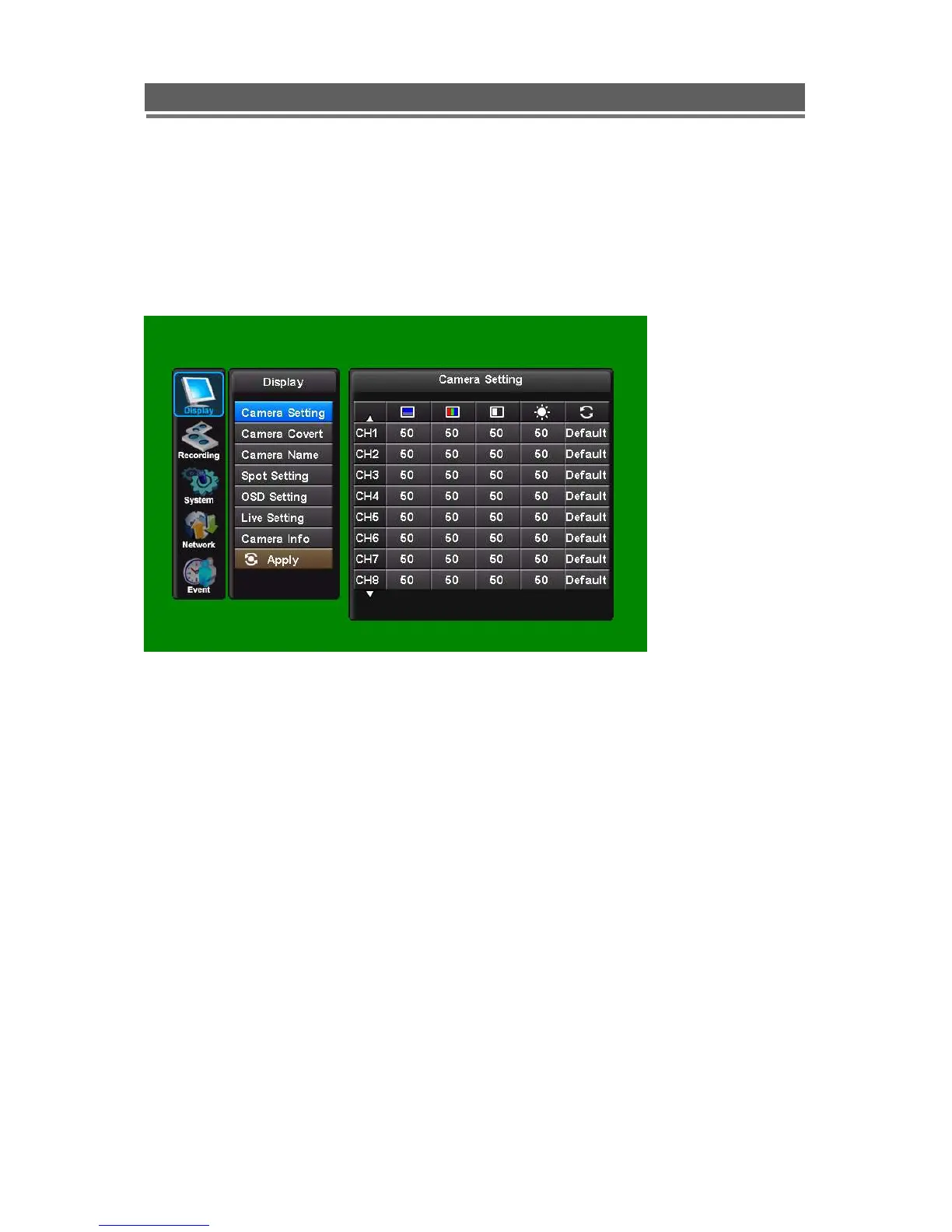 1-1. Camera Setting: Brightness, Saturation, Contrast, Hue and default