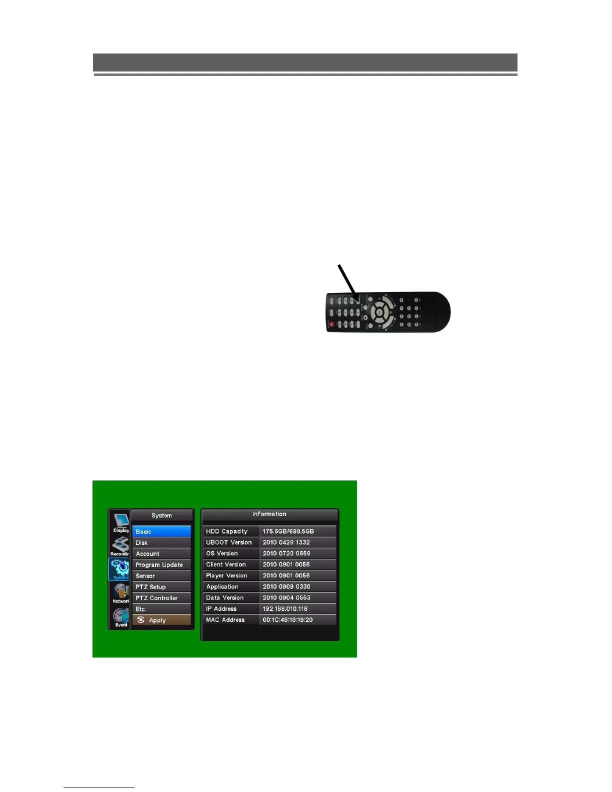 The Information Screen shows the hard disk size, current firmware revisions, IP address and