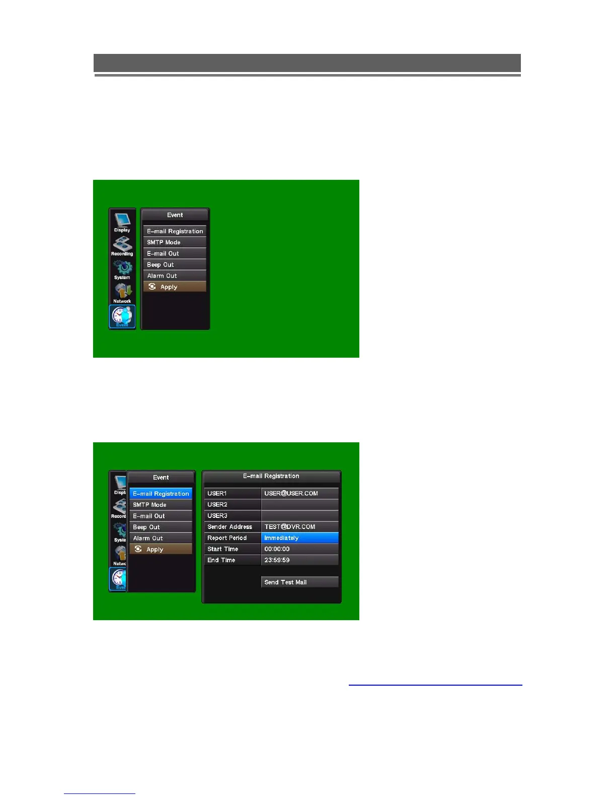 event such as Video Loss / Alarm / Motion or Power Loss. An E-mail will only be sent if the