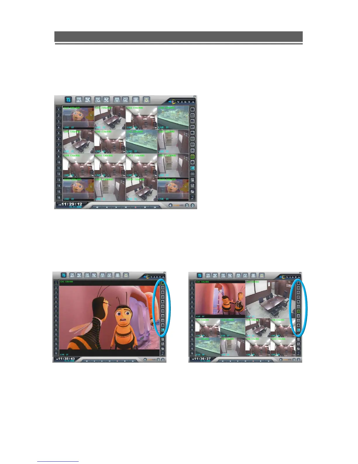 Spilt Screens can be viewed during both live and playback. The splits screens available are: