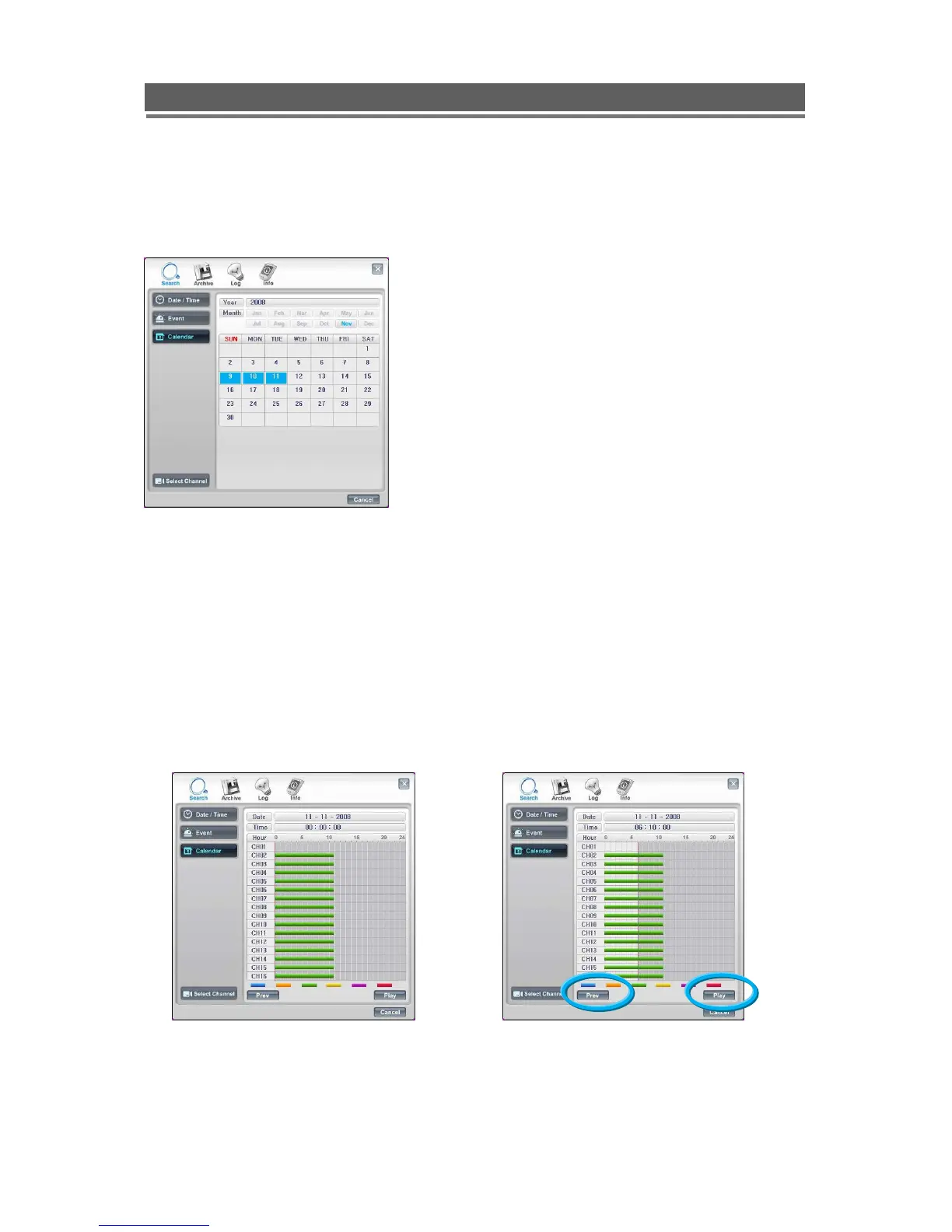 1) Drag the Red line along the colour bar (I.e. Blue: Normal Recording) till the required time
