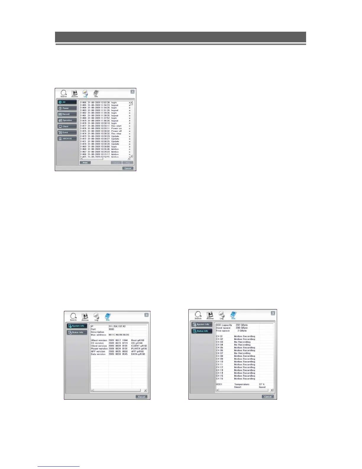 “System Info” of the Remote Log - “Status Info” of the Remote Log