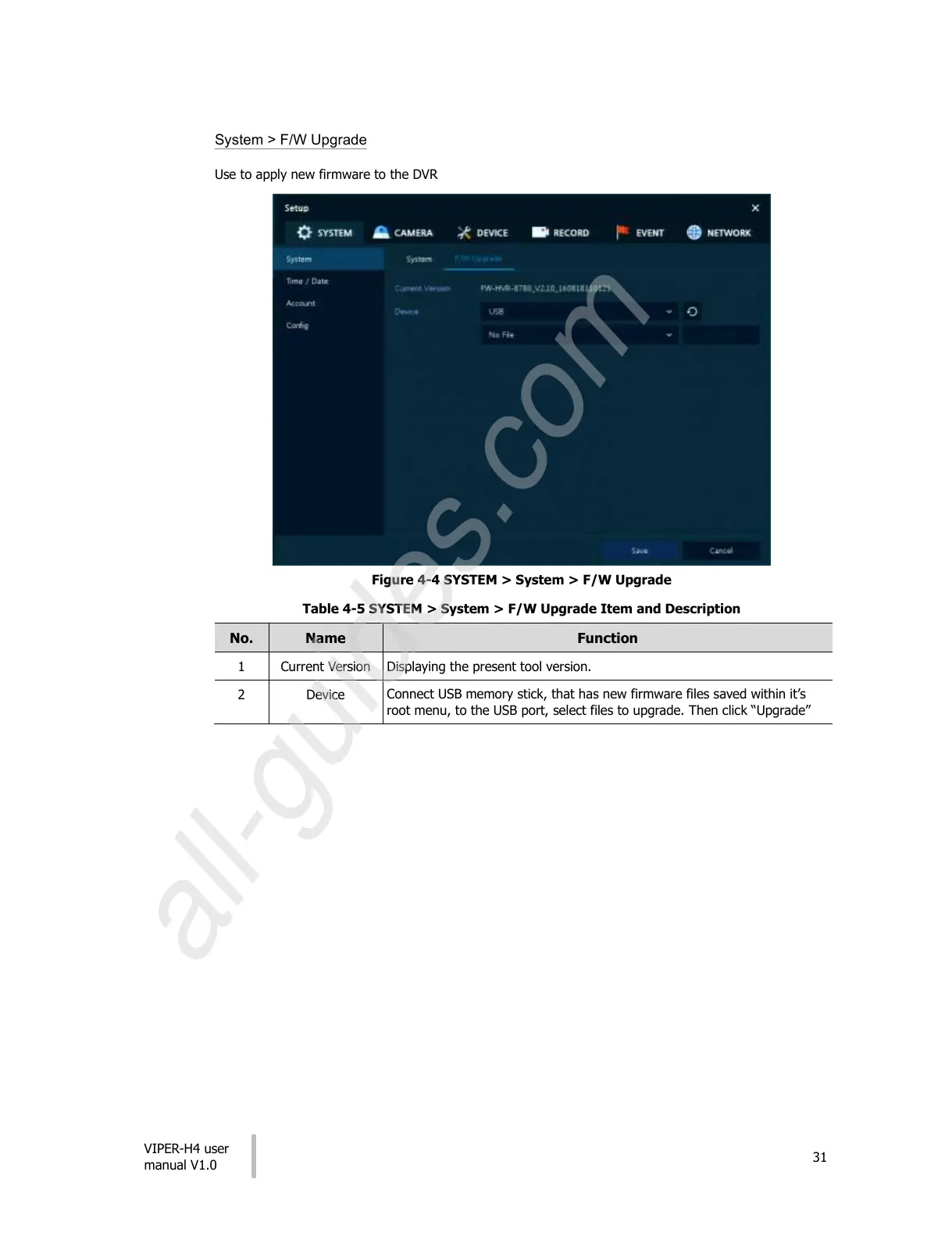 Figure 4-4 SYSTEM > System > F/W Upgrade