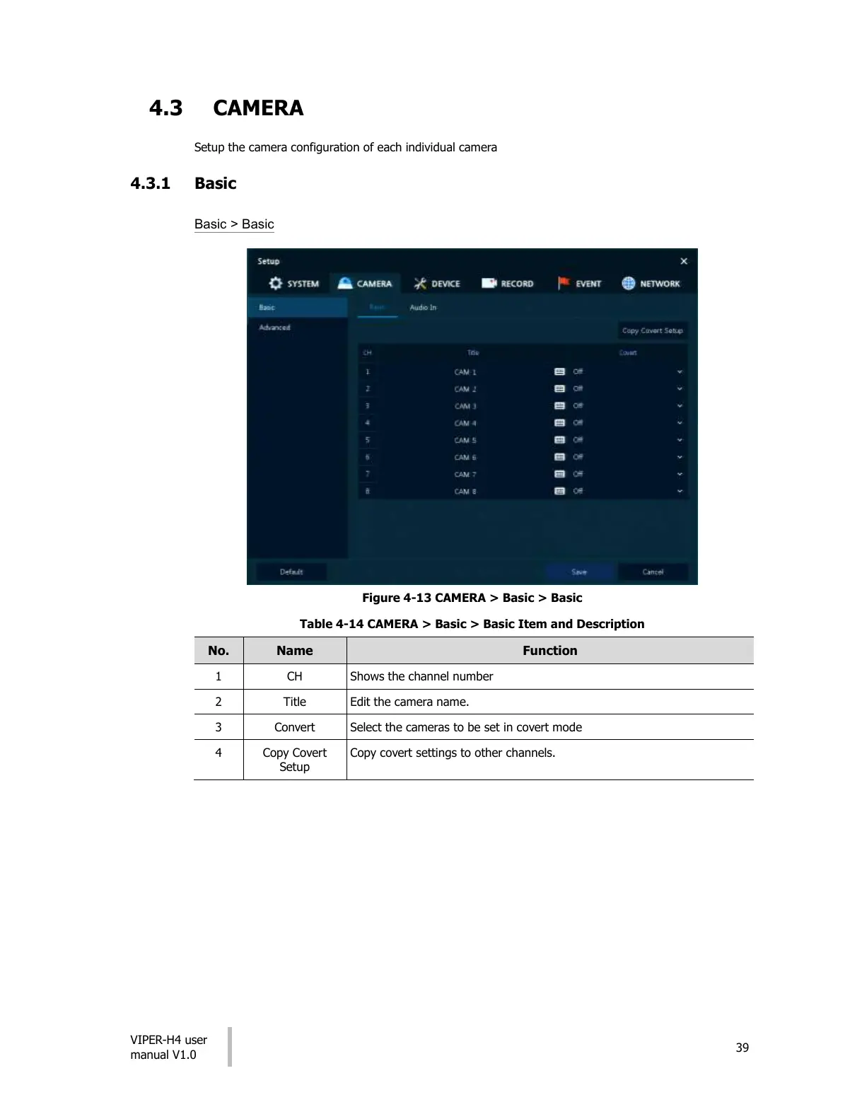 Table 4-14 CAMERA > Basic > Basic Item and Description