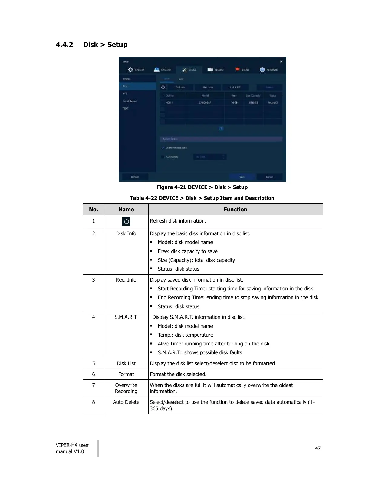 Table 4-22 DEVICE > Disk > Setup Item and Description