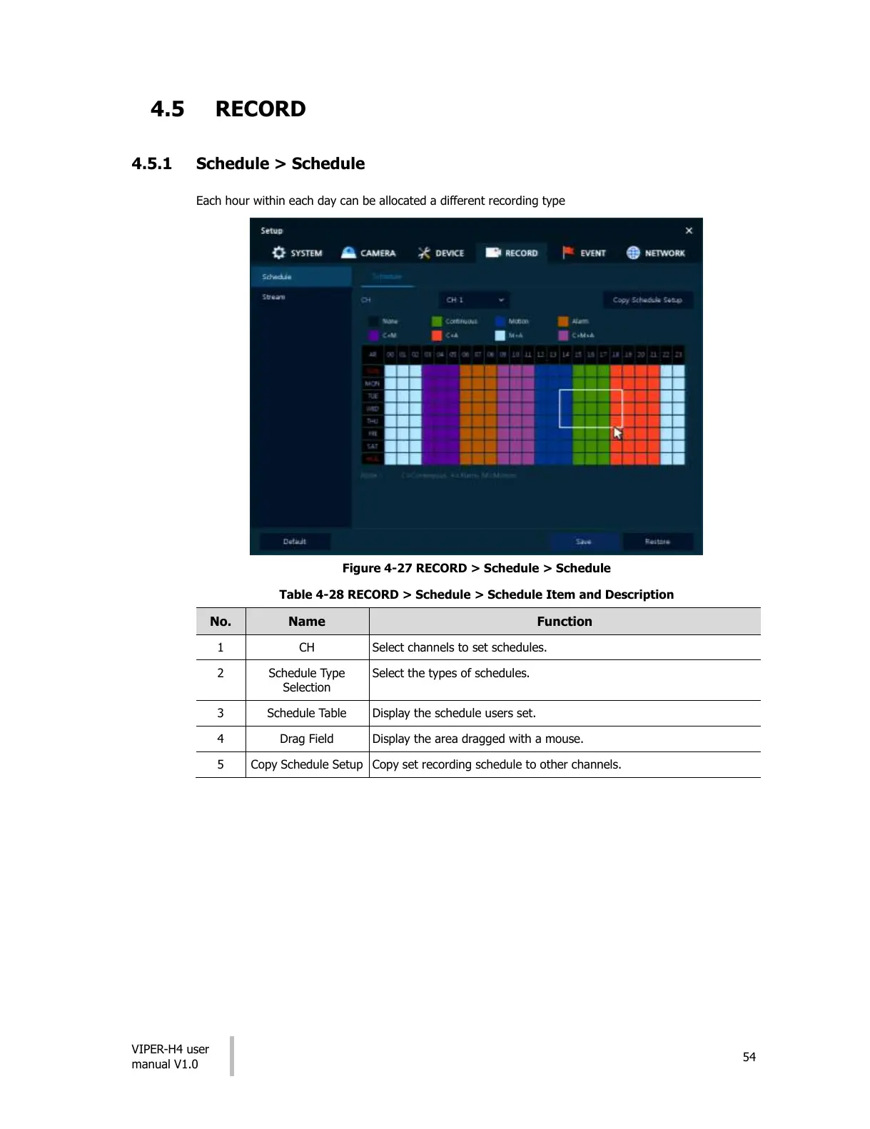 Figure 4-27 RECORD > Schedule > Schedule