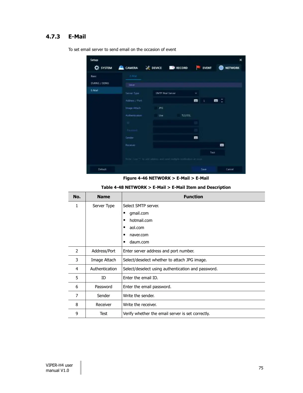 Table 4-48 NETWORK > E-Mail > E-Mail Item and Description