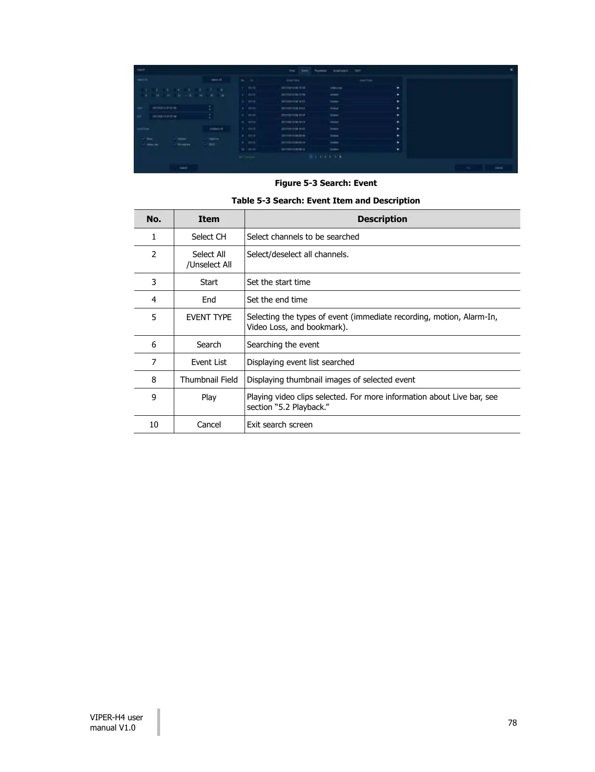 Table 5-3 Search: Event Item and Description
