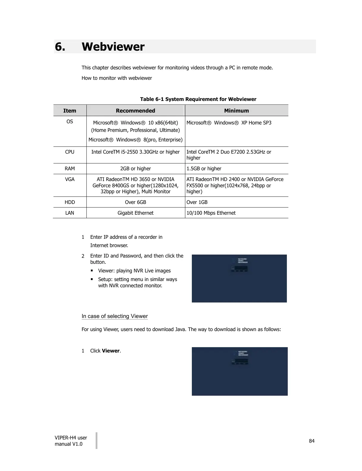 This chapter describes webviewer for monitoring videos through a PC in remote mode.