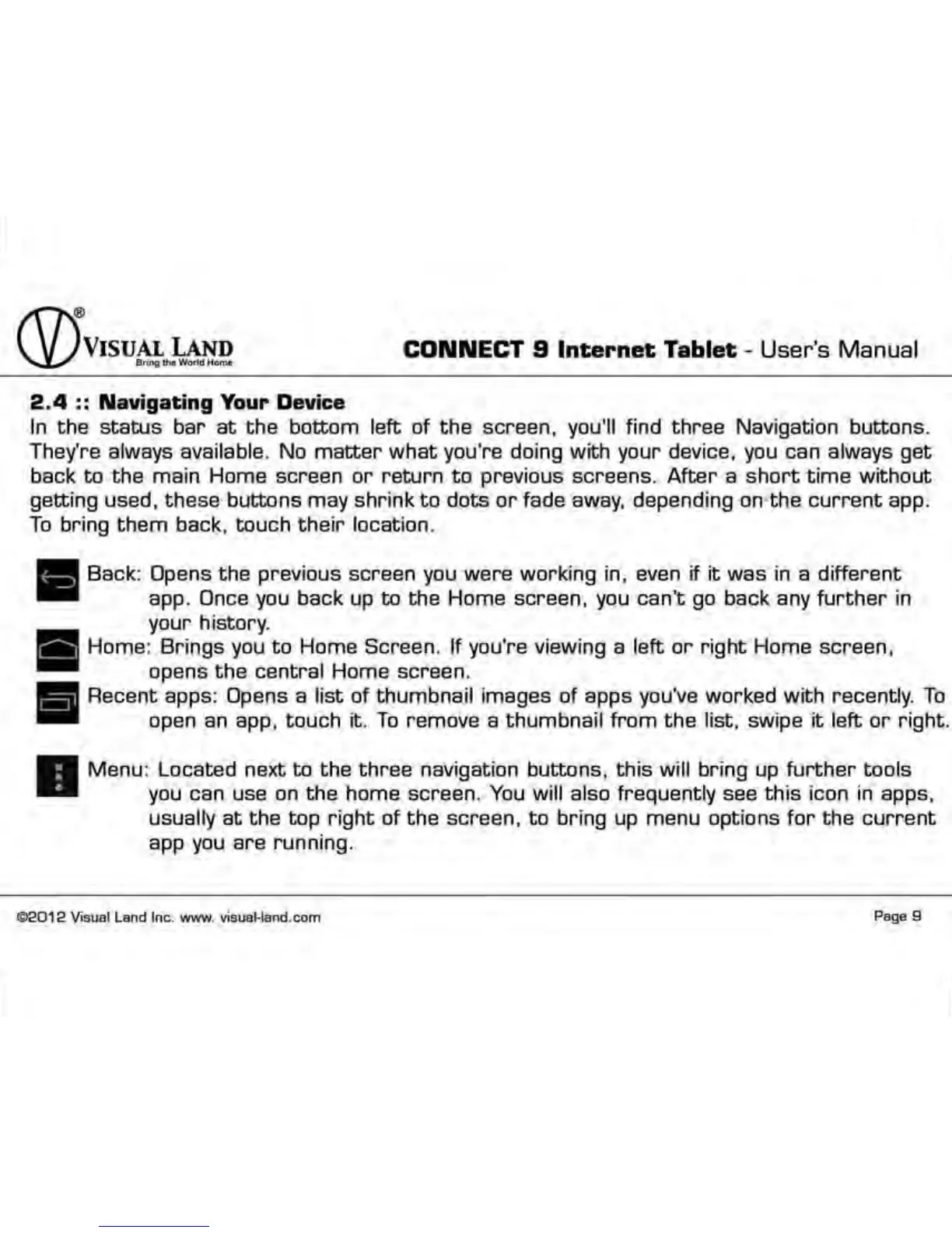 Visual Land Connect 9 - Navigating the Tablet Interface