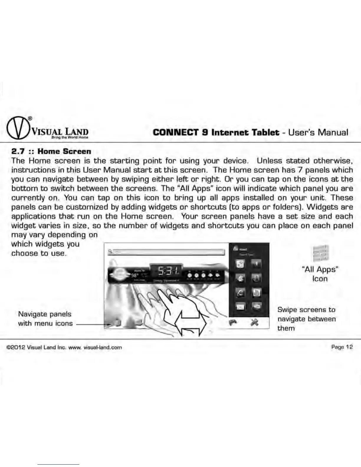 Visual Land Connect 9 - Home Screen Navigation and Customization