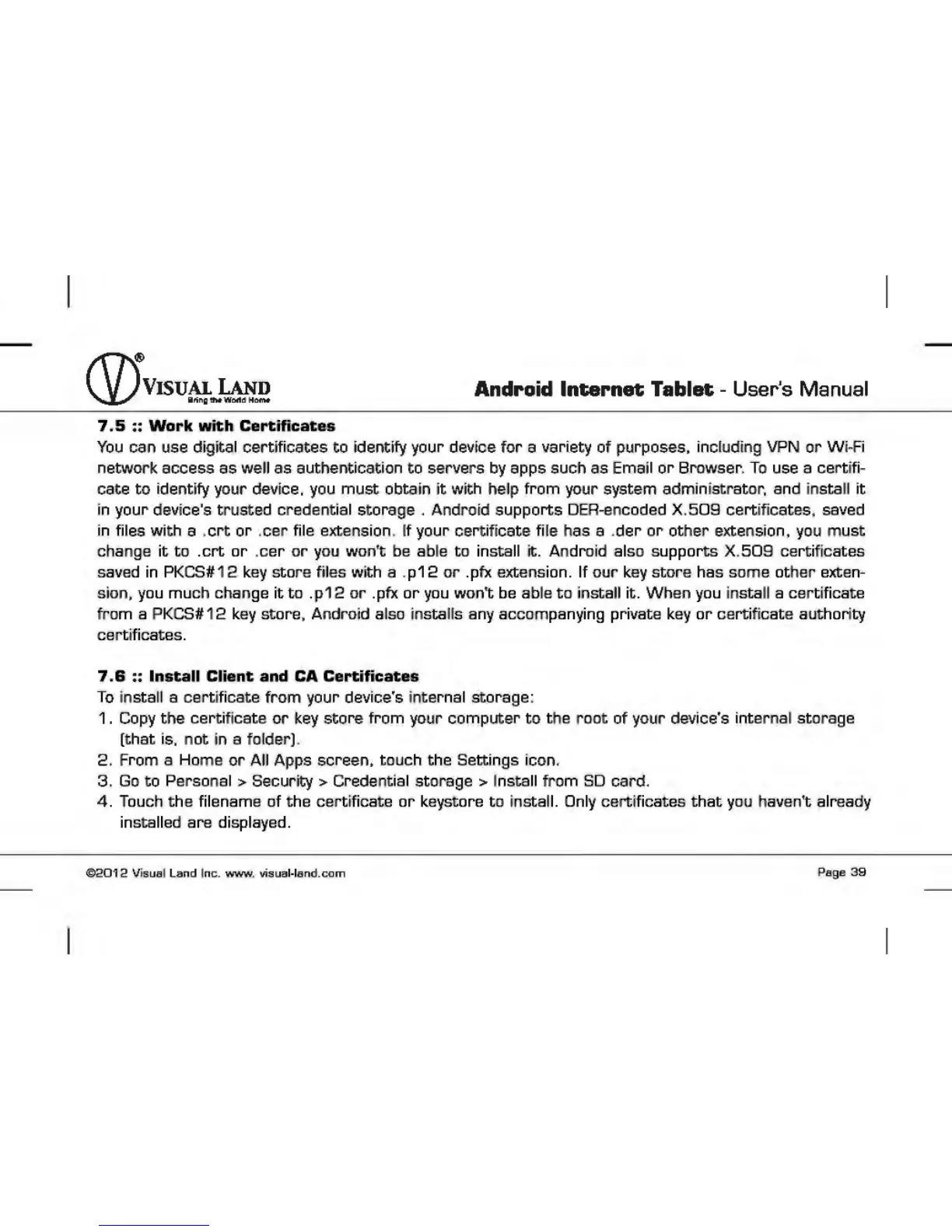 Personal > Security > Credential storage > Install