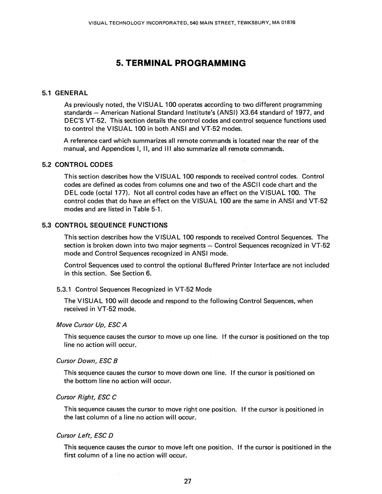 5.3.1 Control Sequences Recognized in VT-52 Mode