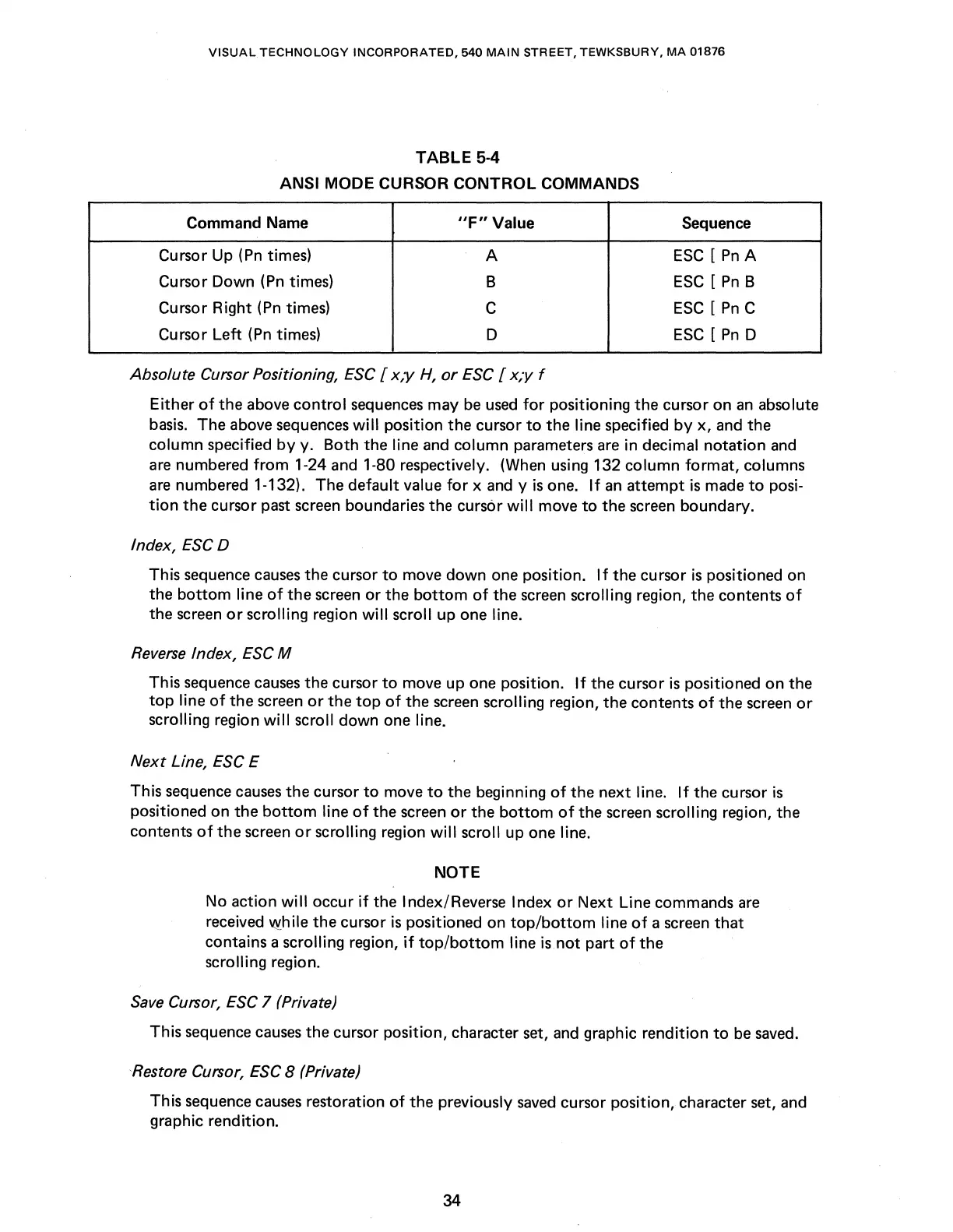 Absolute Cursor Positioning,