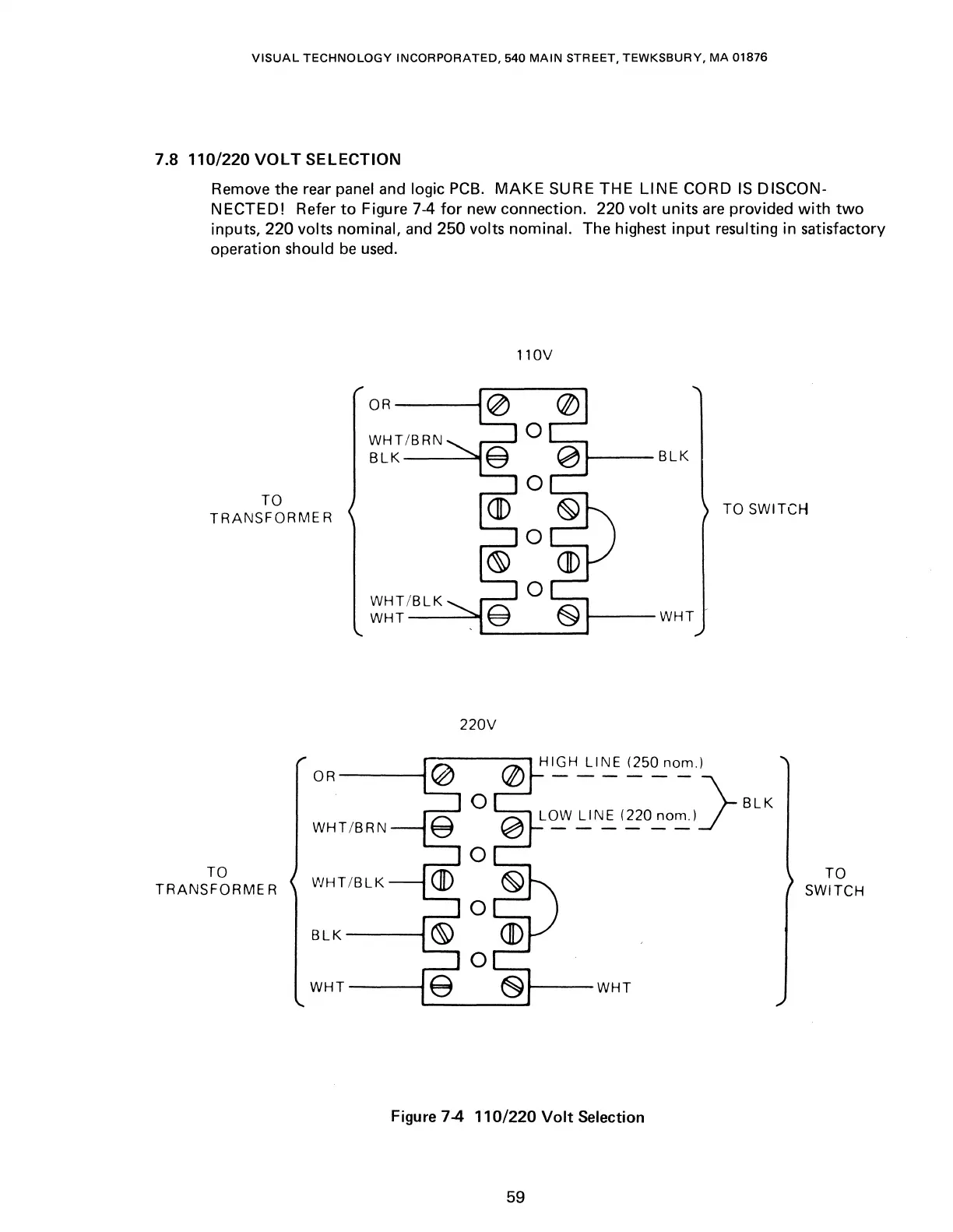 VISUAL 100 - 110;220 Volt Selection; Figure 7-4 110;220 Volt Selection