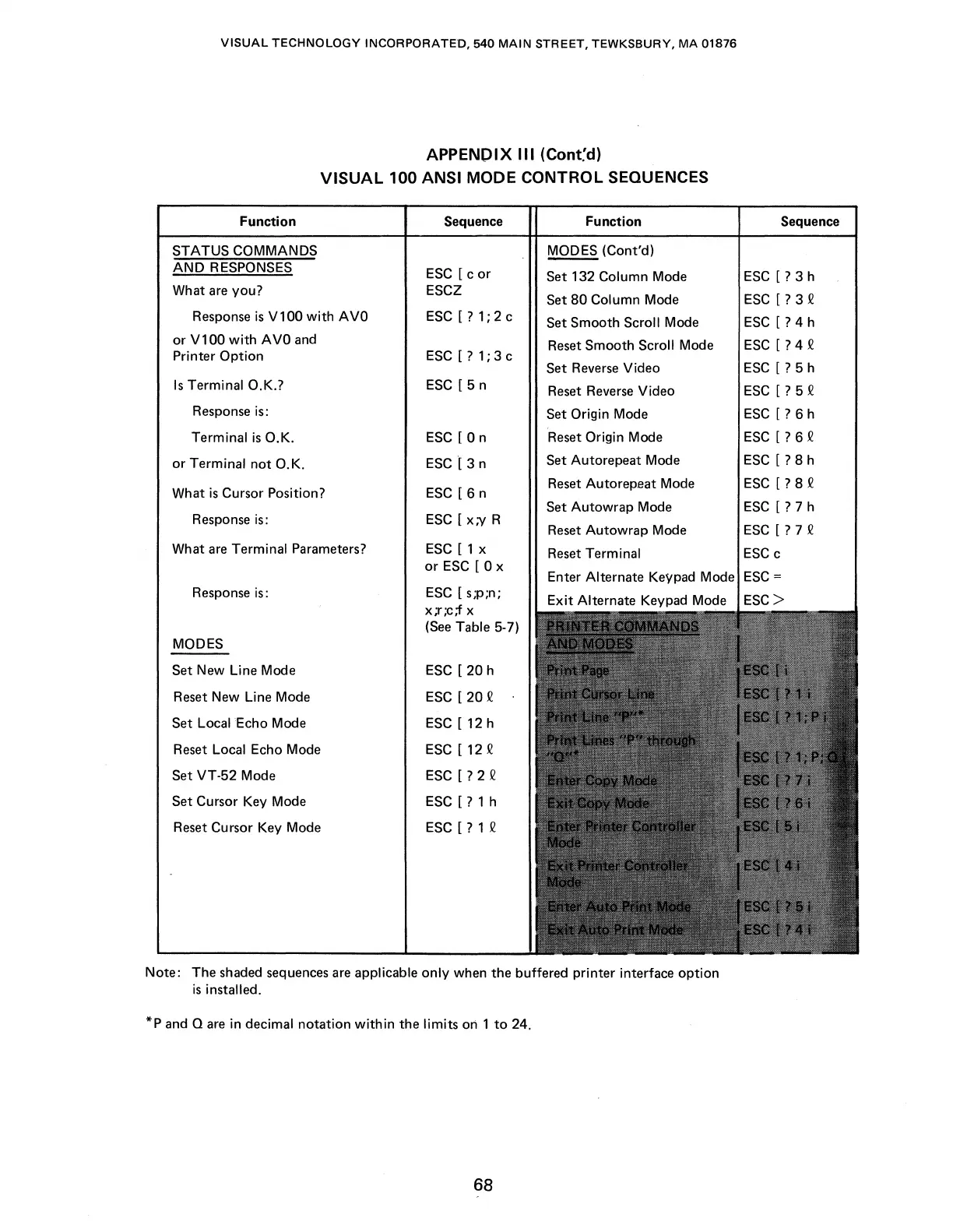 100 ANSI MODE CONTROL SEQUENCES