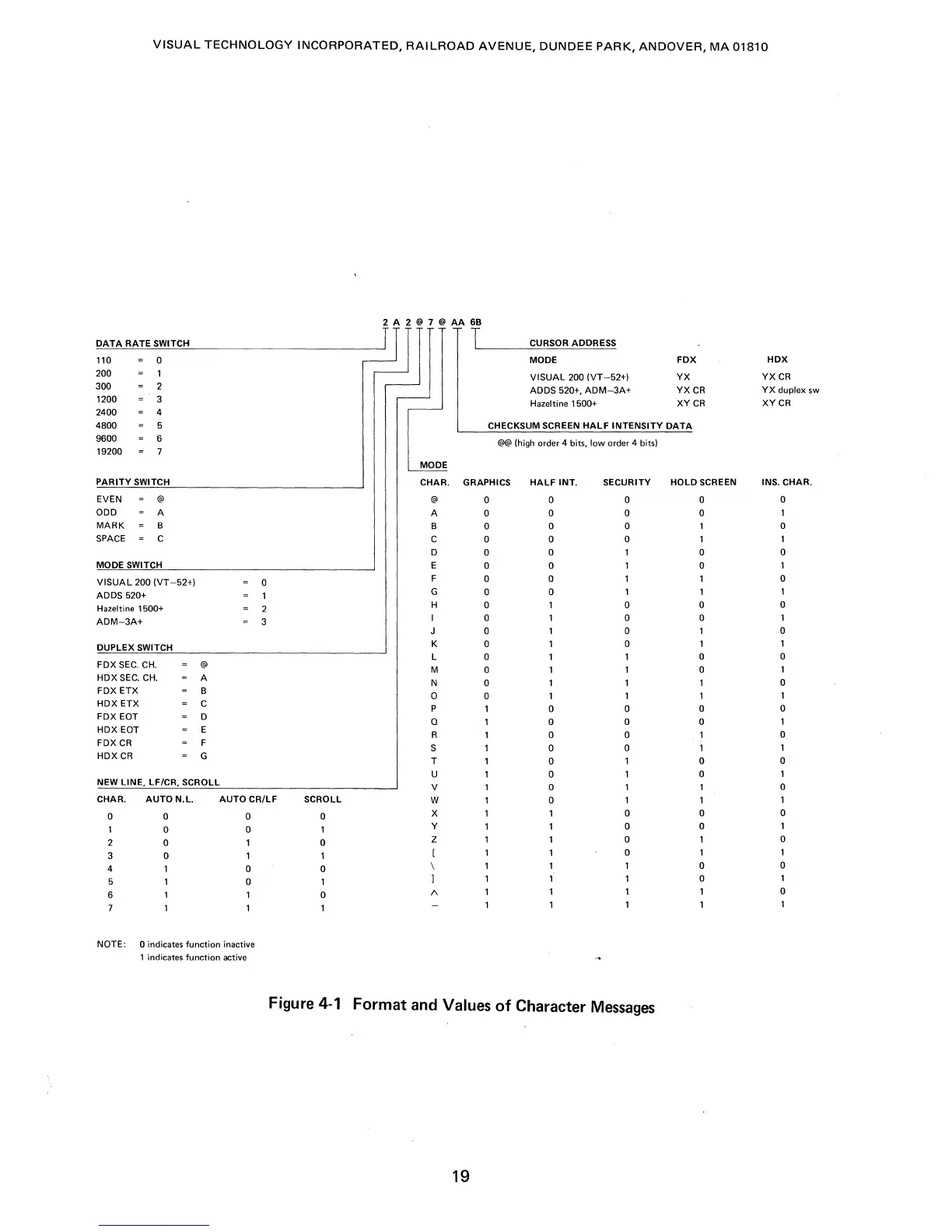 VISUAL 200 - Figure 4-1 Format and Values of Character Messages