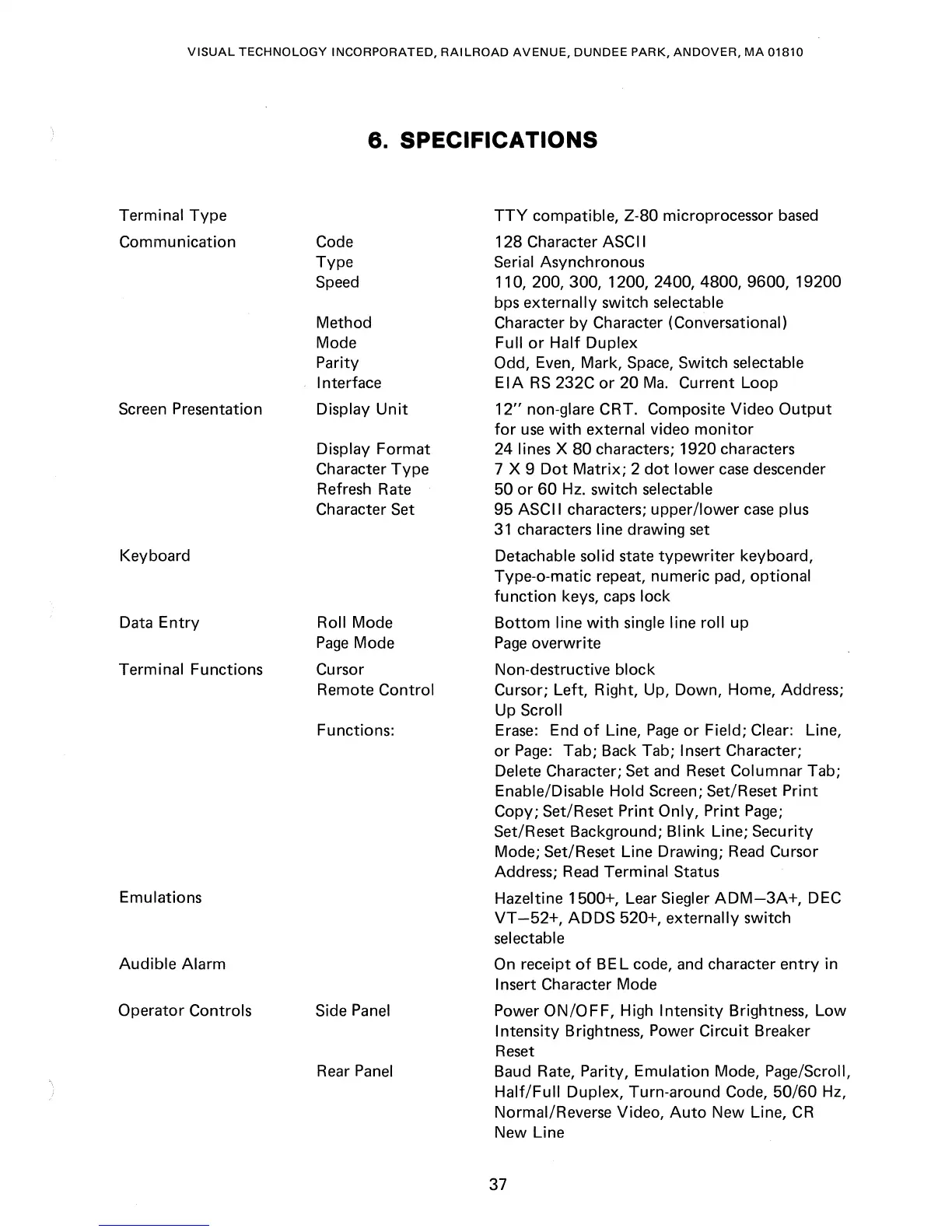 6. SPECIFICATIONS