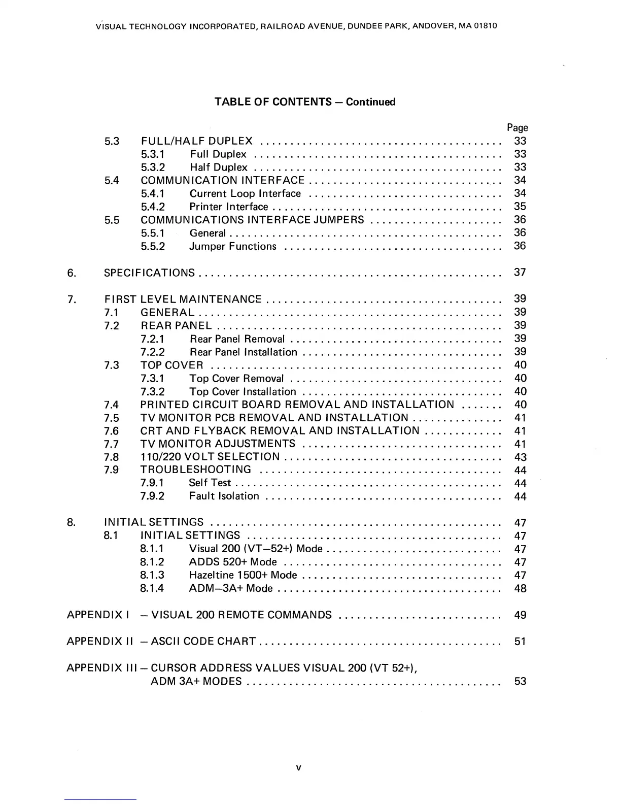 Removal . . . . . . . . . . . . . . . . . . . . . . . . . . . . . . . . .