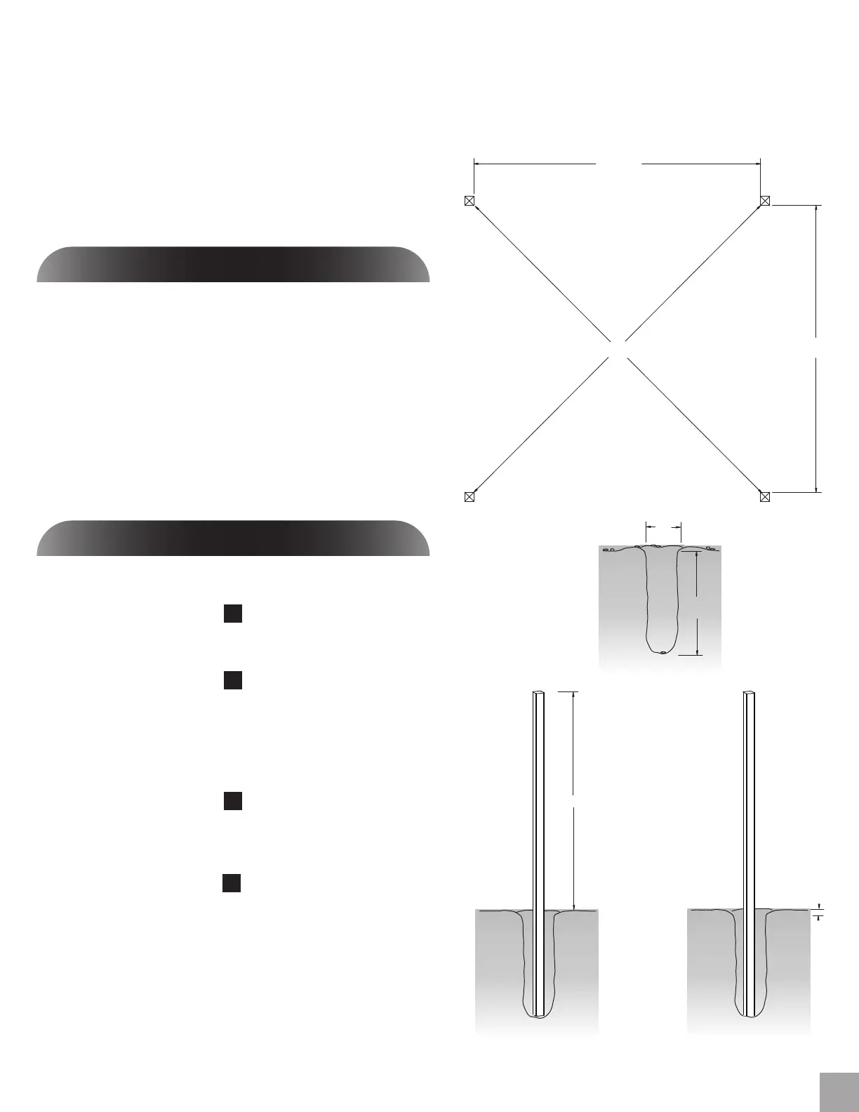 excavate 10” (25.4 cm) diameter x 36” (91.4 cm) deep post holes.