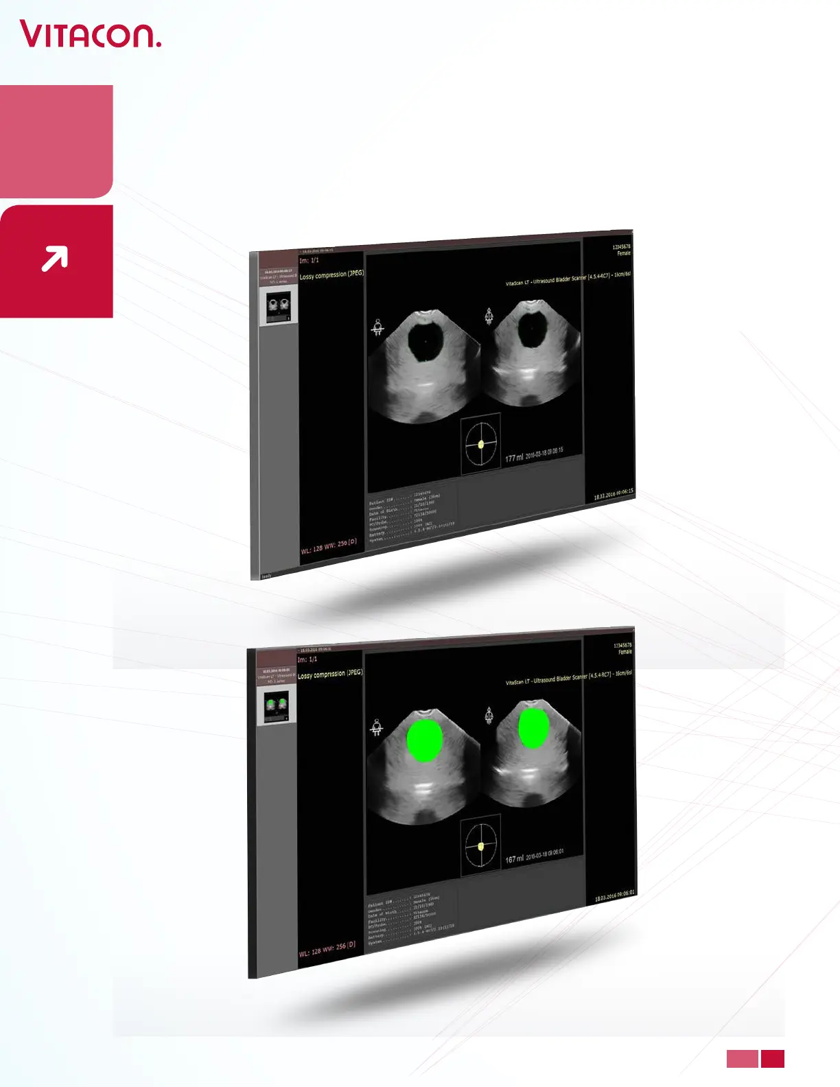 Ultrasound Bladder Scanner”. And an image of results, transversal image and sagittal