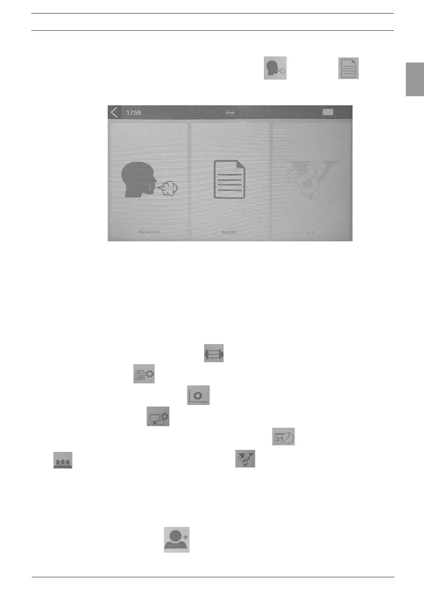 Spirometry option includes VC, FVC and Post (see Sections 3.2