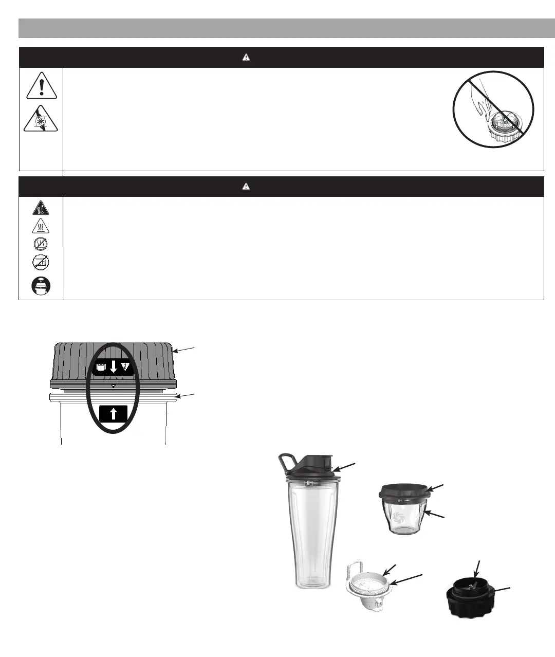 NO utilice su vaso de 20 onzas (0.6 L) ni su tazón de 8 onzas (240 ml) para calentar ingredientes o licuar líquidos calientes. Los ingredientes y líquidos calientes pueden crear una presión