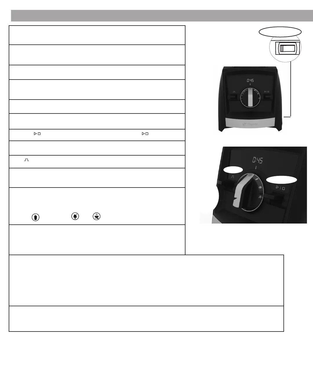 Programs - The icons are listed in Vitamix recipes. The blender will stop at the end of