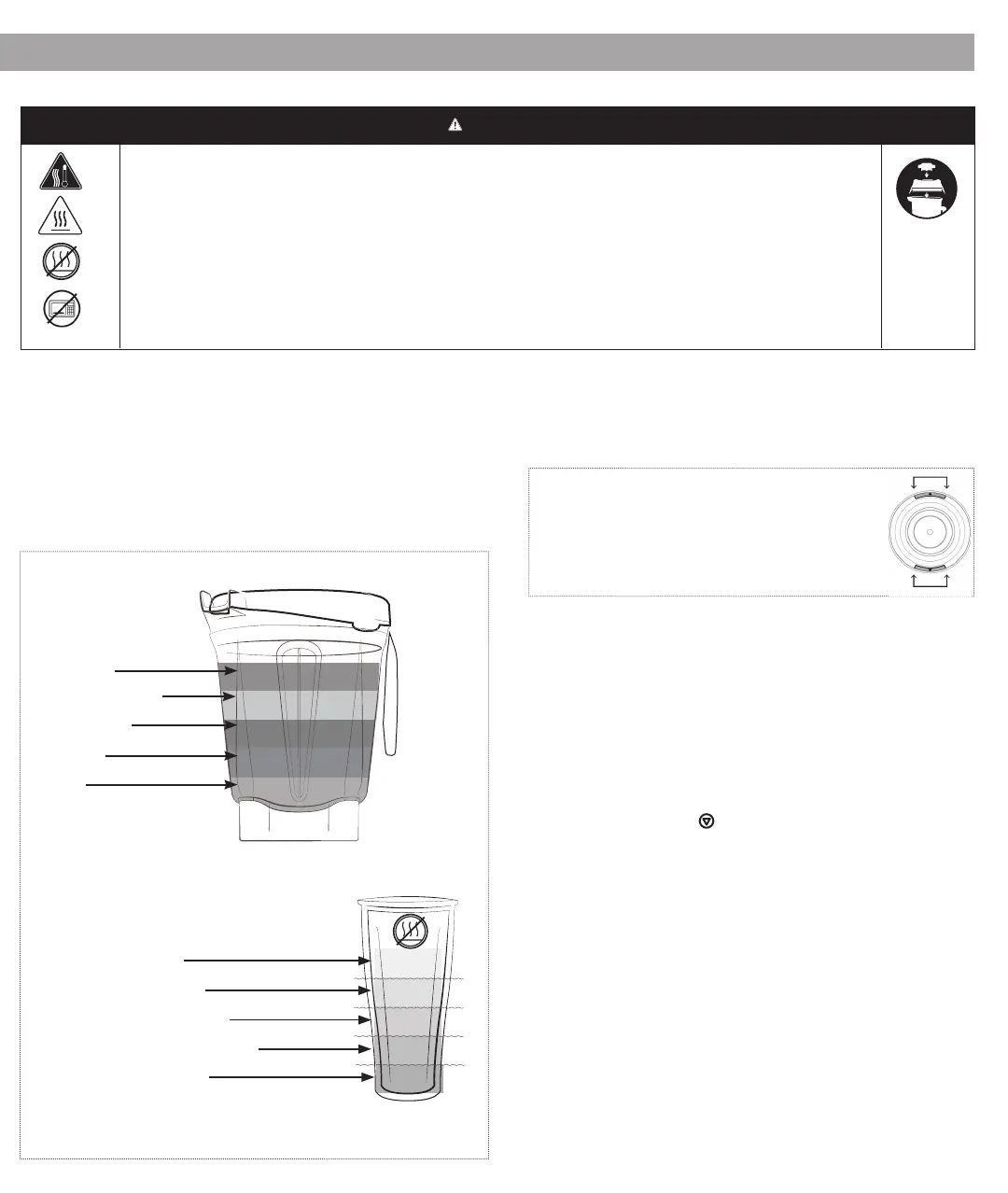 for at undgå mulige forbrændinger, start aldrig på hastigheder over 1, når der blendes varme væsker i en stor beholder.