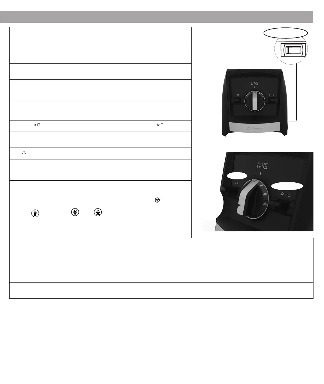 Programmer – Ikonene er oppført i Vitamix-oppskriftene. Blenderen stopper automatisk når programmet er