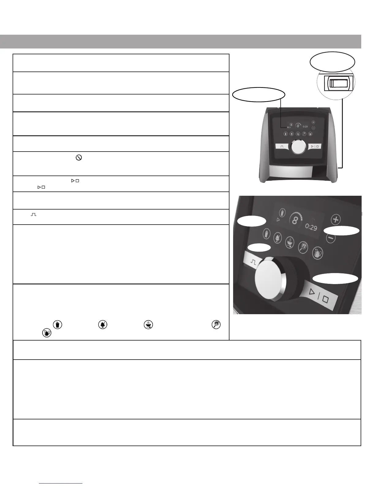 Programas: los iconos aparecen en las recetas de Vitamix. La batidora se detendrá al final del programa