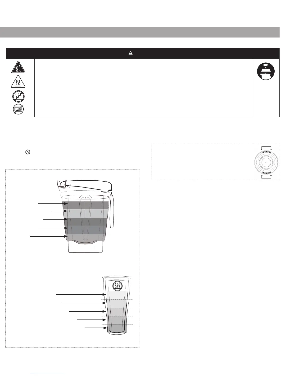 for at undgå mulige forbrændinger, start aldrig på hastigheder over 1, når der blendes varme væsker i en stor