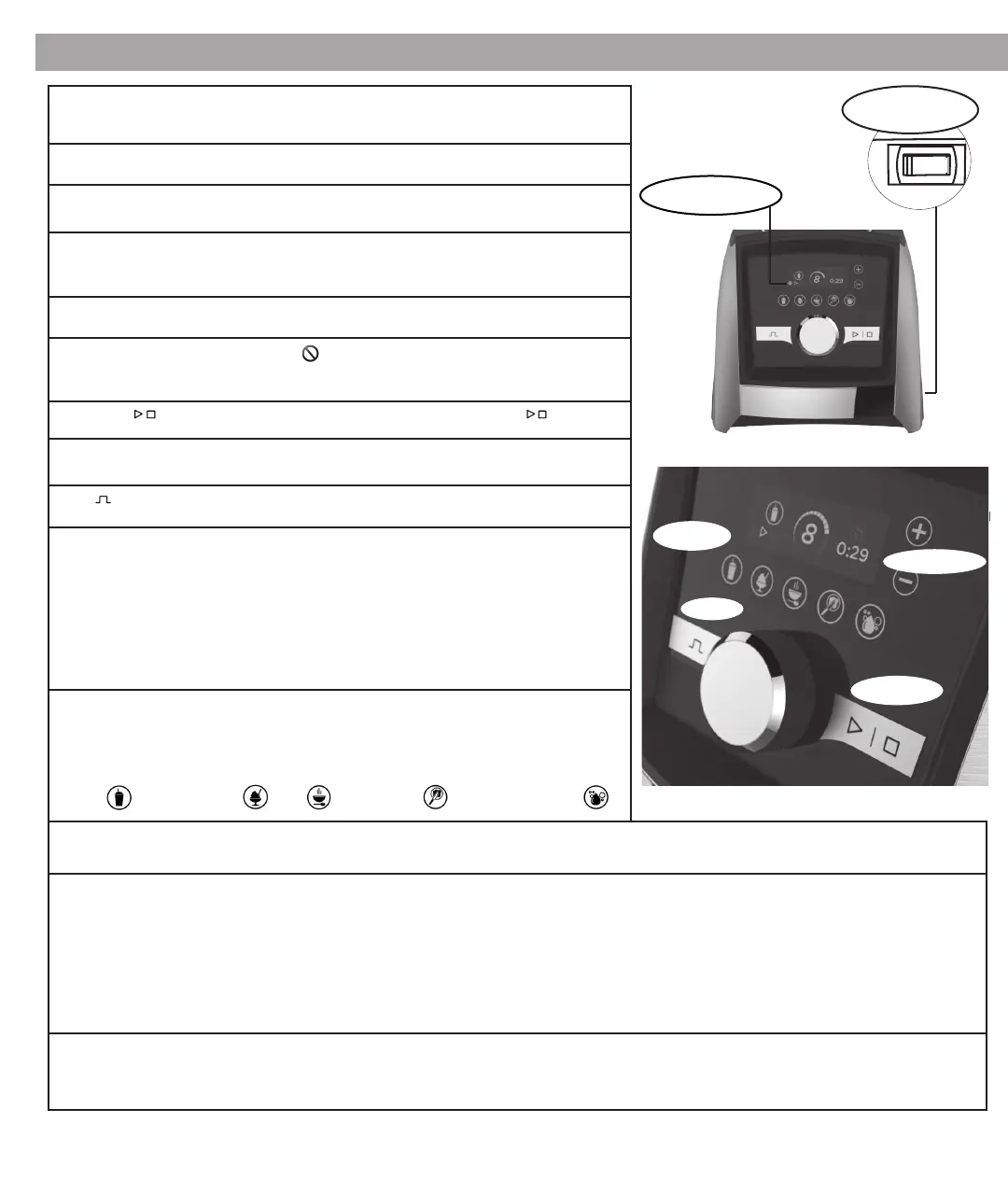 Programas: los iconos se enumeran en las recetas Vitamix. La licuadora se detendrá automáticamente