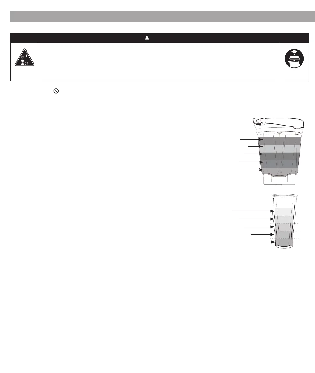 DO NOT blend hot liquids in the 20 oz. (0.6 L) cup or 8 oz. (240 ml) bowl.