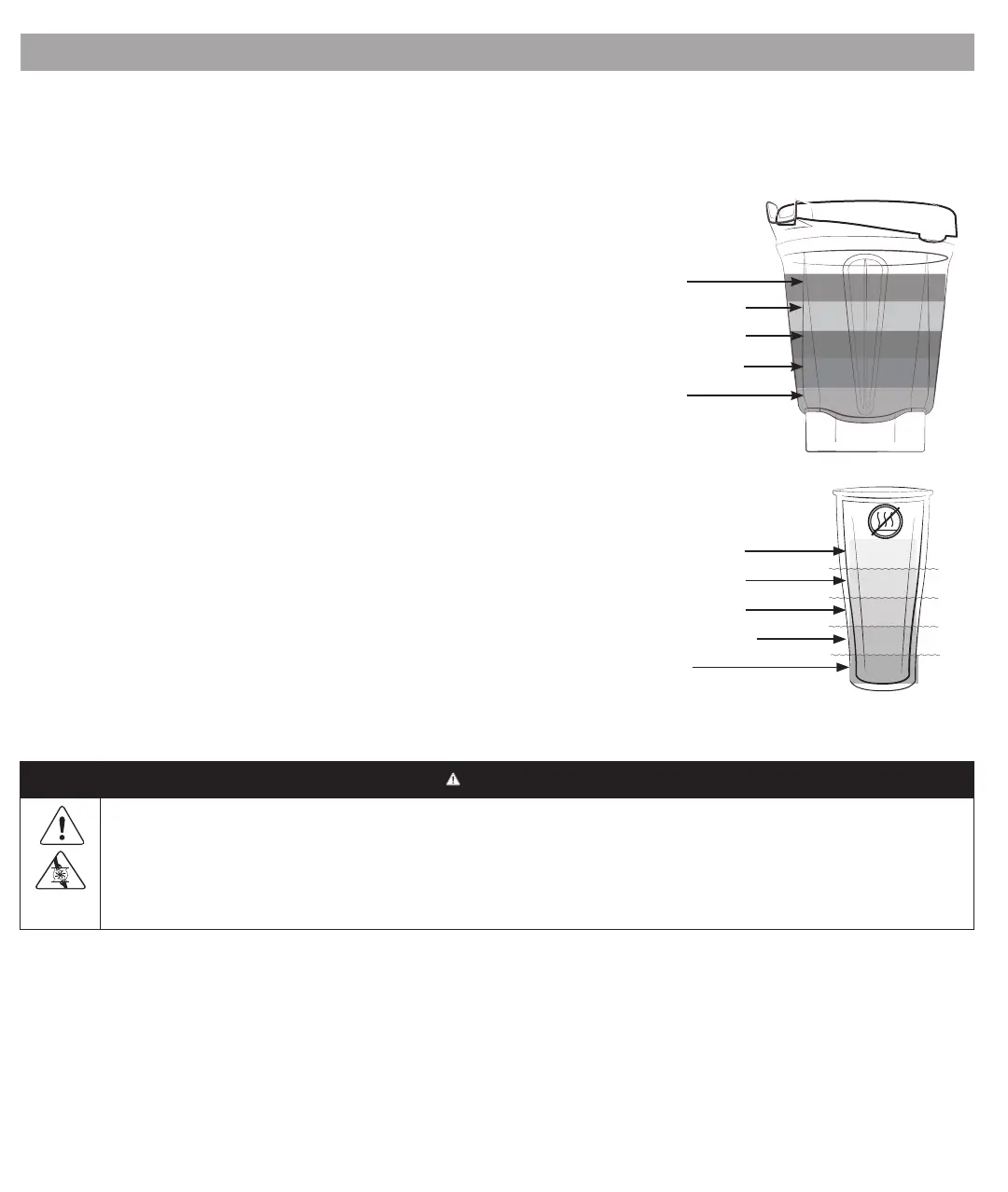 2. Remplissez votre récipient selon votre recette ou l'ordre de remplissage illustré ici. Remarque: Les ingrédients des recettes pour les tasses doivent être insérés dans l'ordre inverse