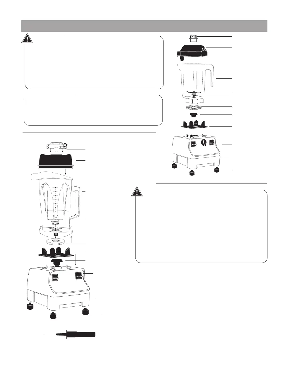 Rotating blades can cause severe injury. DO NOT reach into the container while the