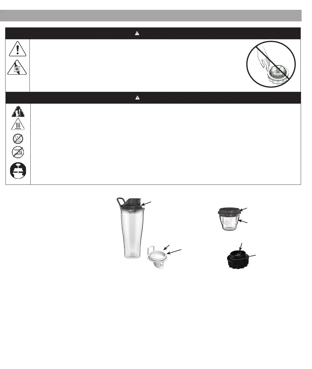 Tenir les mains et les ustensiles éloignés des récipients et des tasses lorsque le mélangeur fonctionne.