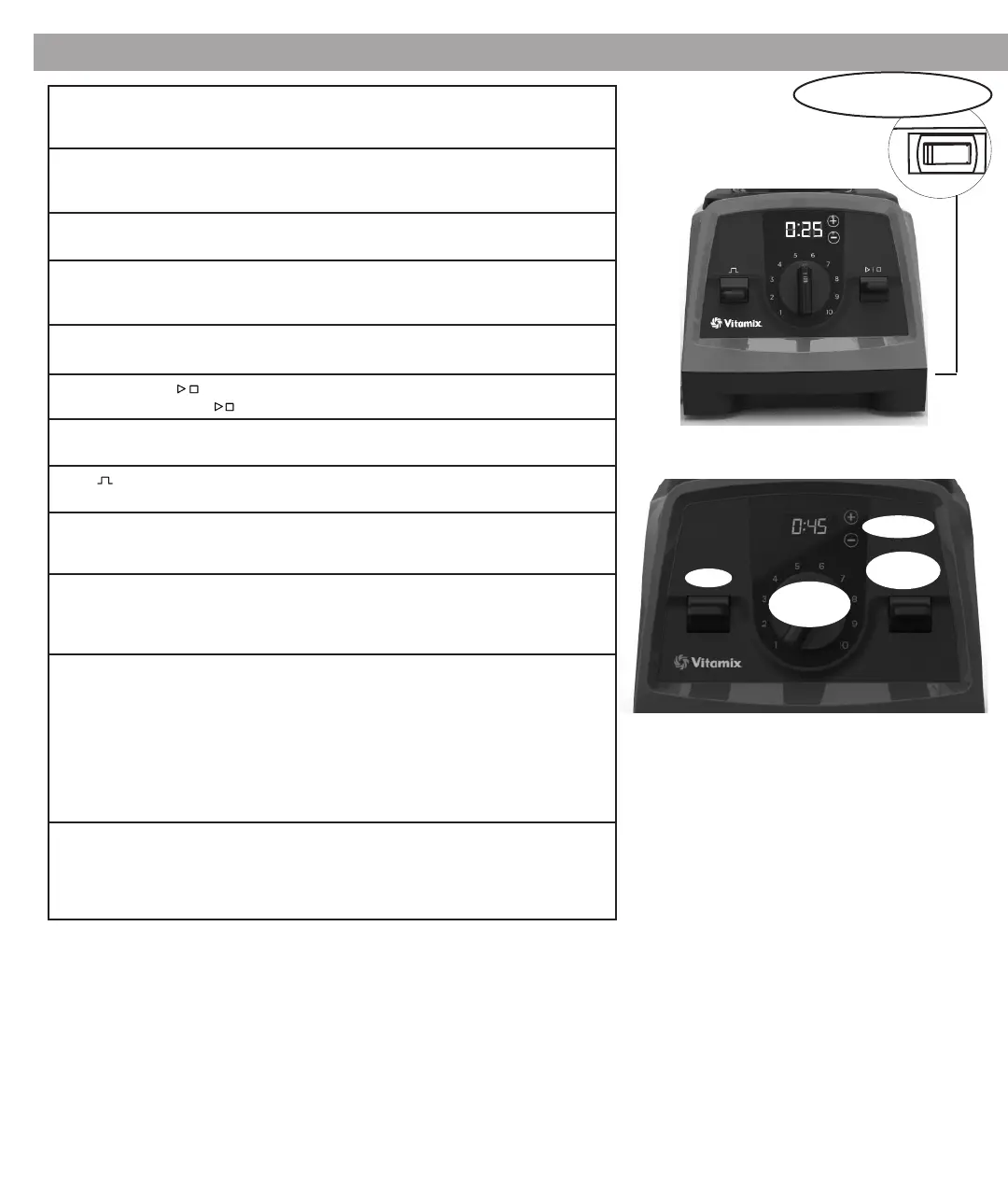 ModeVeille – Le mélangeur se mettra en veille si le panneau de commande n'est pas utilisé