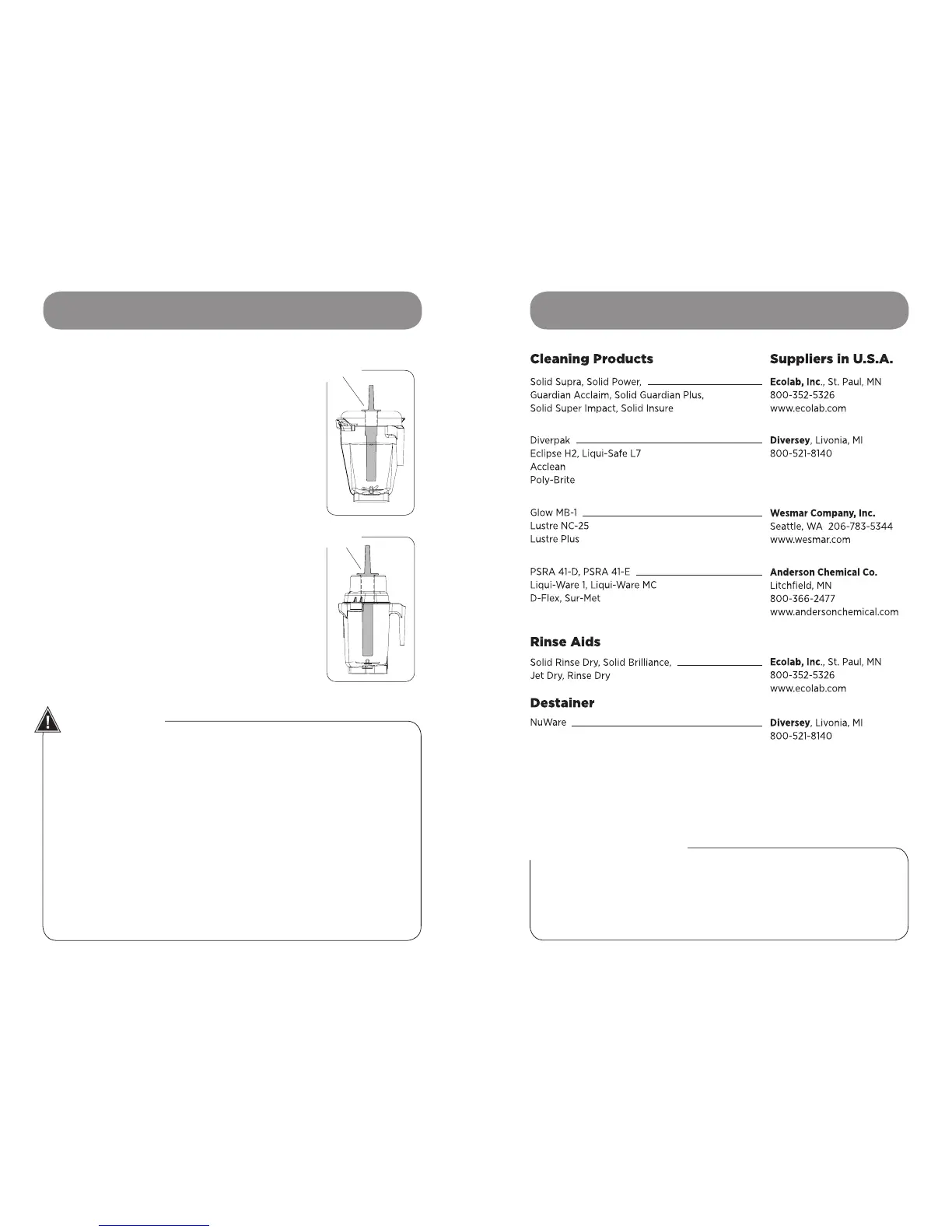 Cleaning Products: Do not use abrasive cleaning agents or concentrated