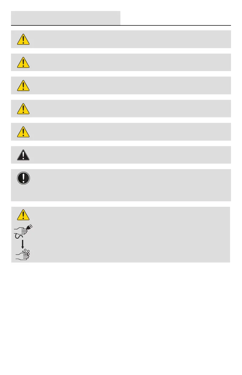 After handling the electrical power cord, please wash your hands.