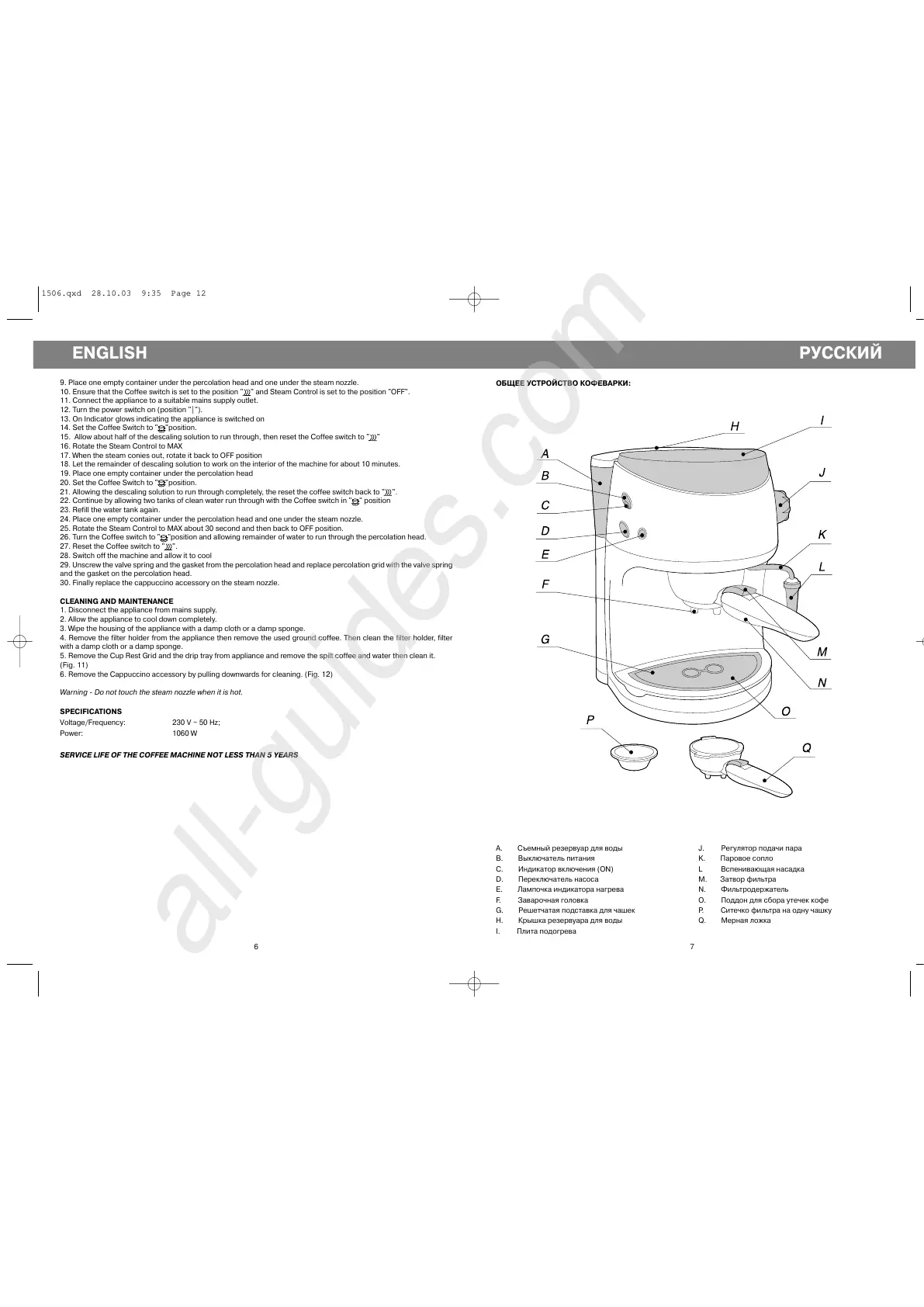 SERVICE LIFE OF THE COFFEE MACHINE NOT LESS THAN 5 YEARS