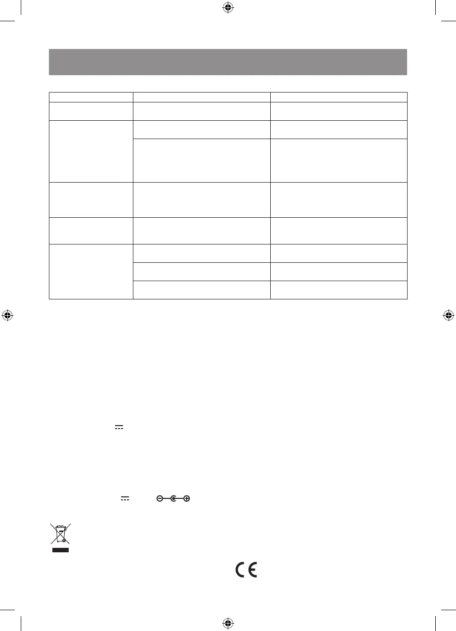 Malfunction Possible causes Solution