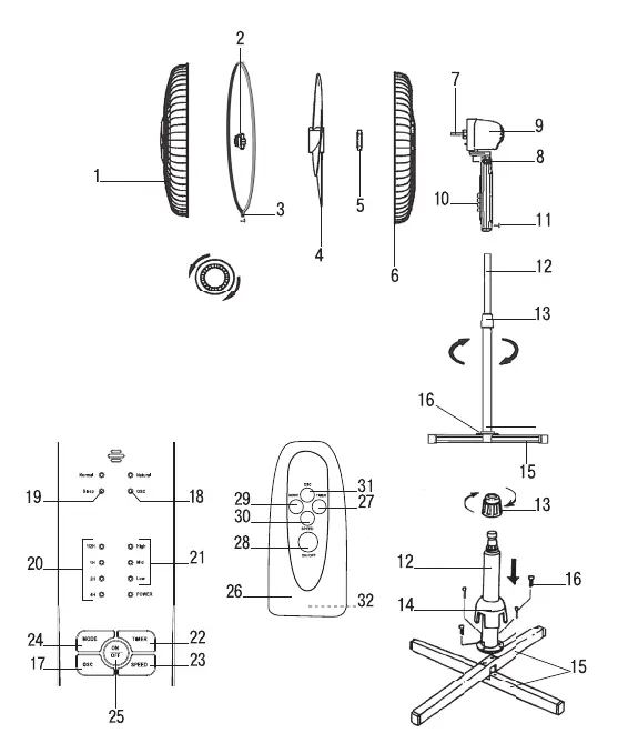 trol (26), the air flow mode indicator (19) «SLEEP» (red)