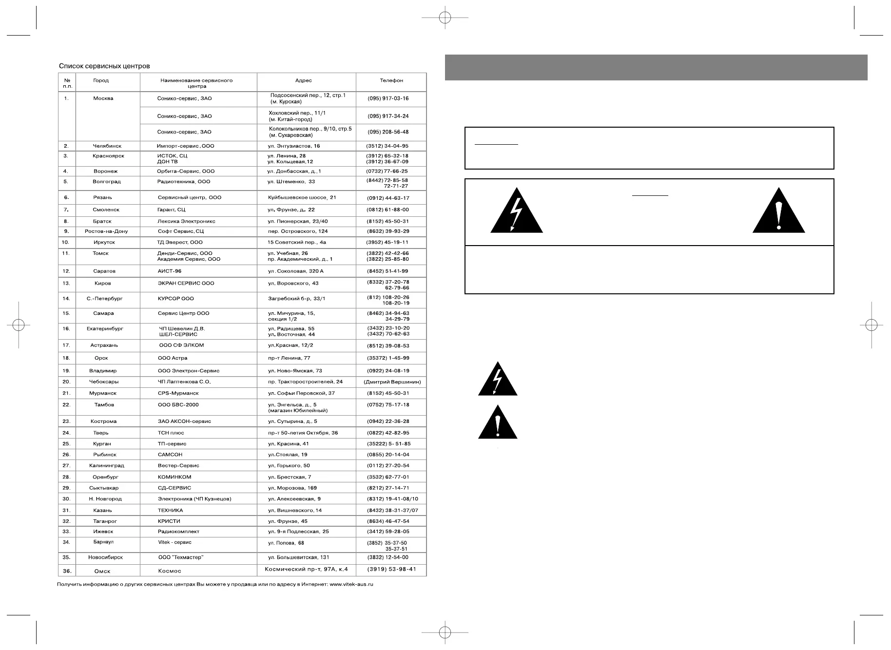 TO REDUCE THE RISK OF ELECTRIC SHOCK, DO NOT REMOVE COVER (OR BACK) NO USER SER<